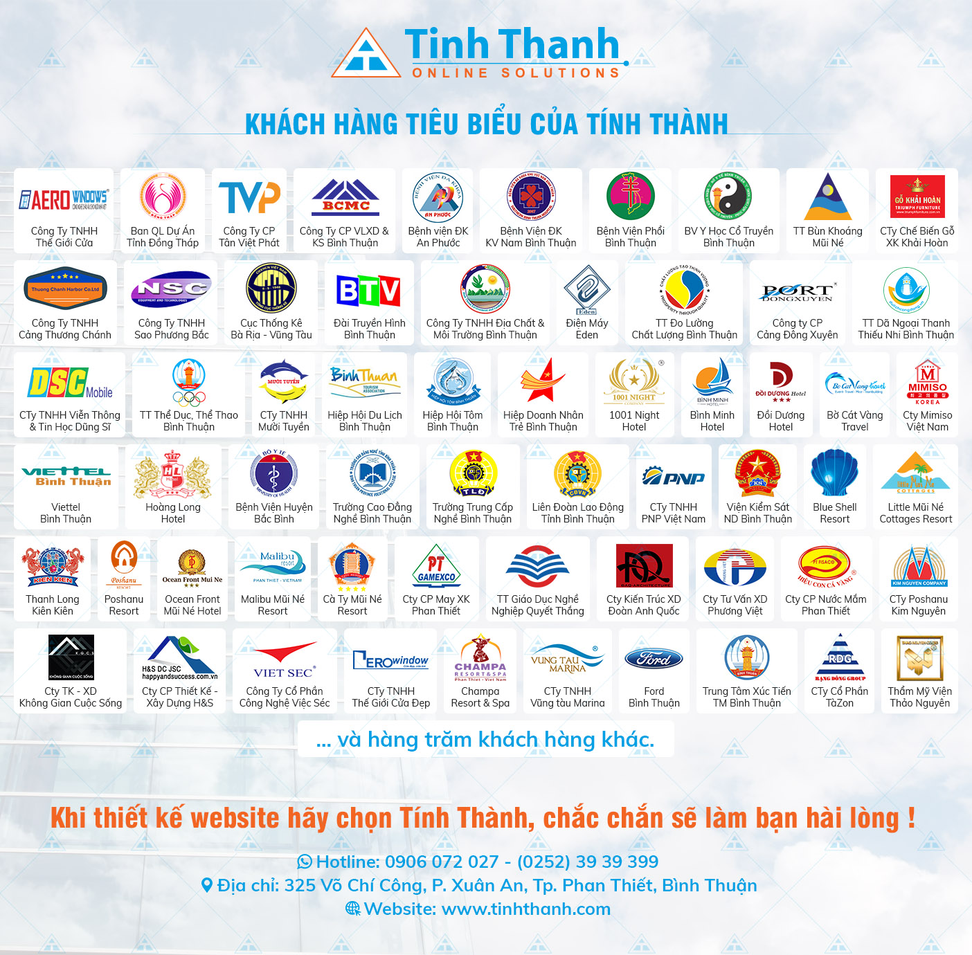 Công ty Tính Thành tự hào là công ty thiết kế website đầu tiên tại Bình Thuận, với 12 năm kinh nghiệm và hơn 1000 dự án website đã làm trên toàn quốc.