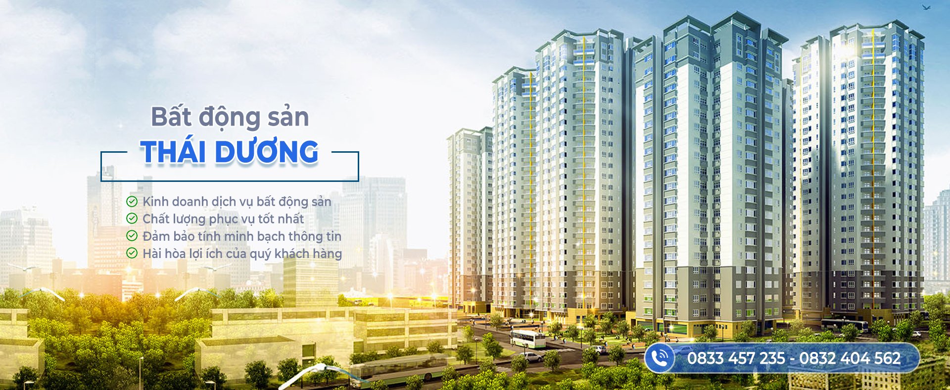 Khách hàng khi đến với bất động sản Thái Dương sẽ luôn có được những thông tin cập nhật, đầy đủ, chính xác nhất về thị trường Bất động sản trong nước cũng như quốc tế; từ thông tin chi tiết về các loại hình Bất động sản, tình hình thị trường, xu hướng mua bán, giá cả… Bởi chúng tôi cam kết sẽ luôn nỗ lực hết mình để giữ vững vai trò là cầu nối hiệu quả, sự lựa chọn đáng tin cậy cho các nhà đầu tư Bất động sản.