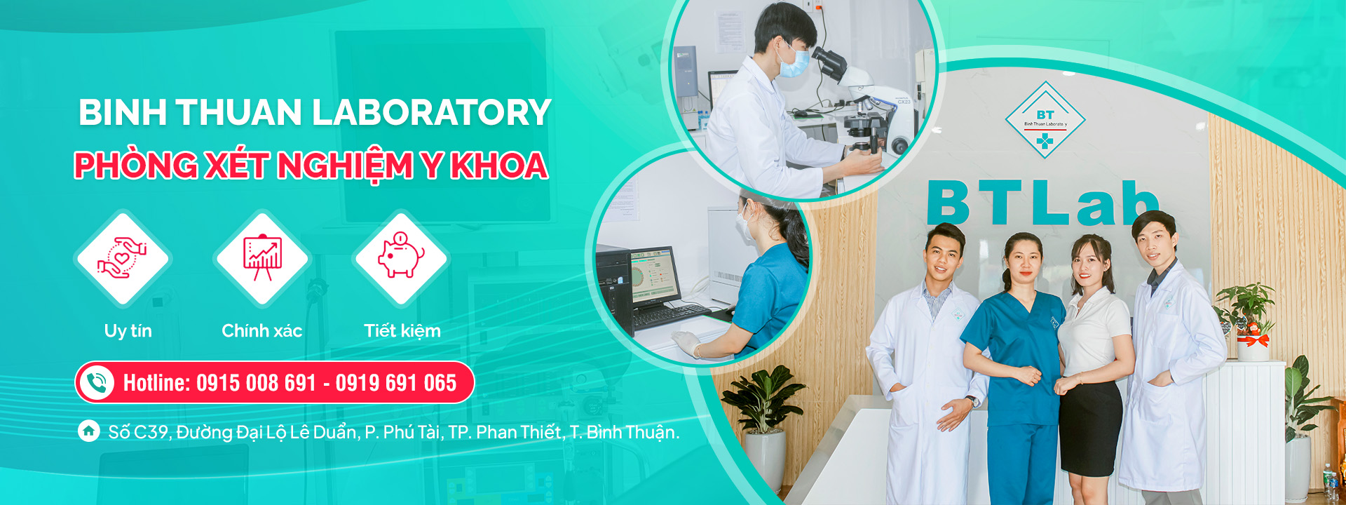 Trung tâm xét nghiệm BTLab được tọa lạc tại Số 39 Lê Duẩn, phường Phú Tài, TP. Phan Thiết được thành lập với sứ mệnh mang đến cho khách hàng giải pháp quản trị sức khỏe thông qua công nghệ xét nghiệm hiện đại để phát hiện bệnh sớm nhất và phòng bệnh kịp thời, làm cho việc phòng bệnh trở nên dễ dàng hơn. BTLab luôn sáng tạo tự tìm tòi hướng đi cho mình và vươn lên không ngừng, từng bước tự khẳng định vị trí, được biết đến như một thương hiệu lớn và uy tín trong lĩnh vực cung cấp các dịch vụ xét nghiệm tổng quát, xét nghiệm sàng lọc trước sinh, xét nghiệm sàng lọc sơ sinh, xét nghiệm gene ung thư - xét nghiệm sàng lọc ung thư sớm, xét nghiệm tiền hôn nhân, xét nghiệm hiếm muộn ..vv.