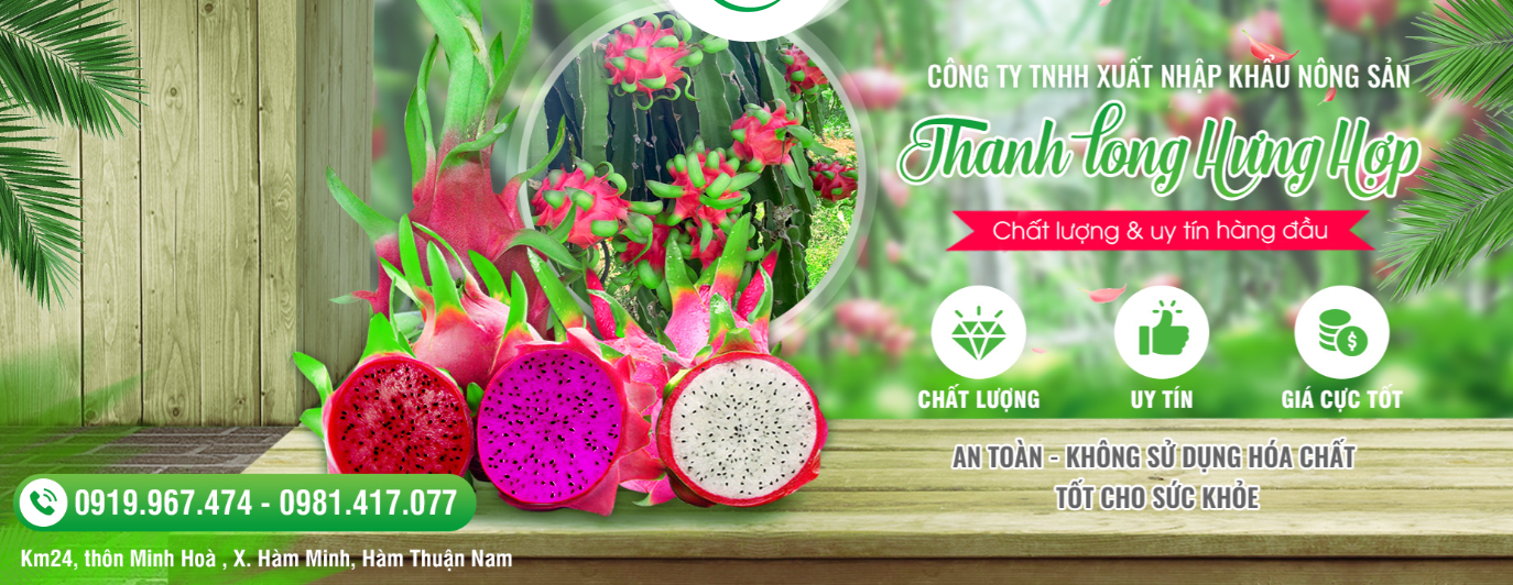CÔNG TY TNHH XUẤT NHẬP KHẨU NÔNG SẢN HƯNG HỢP với hơn 7 năm hoạt động trong ngành nghề thu mua, đóng gói và sản xuất nông sản, đặc biệt là thanh long cho thị trường trong nước và quốc tế. Hưng Hợp tự tin cam kết cung ứng ra thị trường số lượng lớn thanh long đến các nước: Ấn Độ, Mỹ, Trung Quốc, Thái Lan, Lào ... với các loại thanh long tiêu biểu: thanh long ruột trắng, thanh long ruột đỏ, thanh long tím hồng. Khu nhà xưởng rộng rãi cùng hàng chục công nhân viên lành nghề và tất cả quy mô luôn đảm bảo các tiêu chuẩn VietGAP, GlobalGAP.