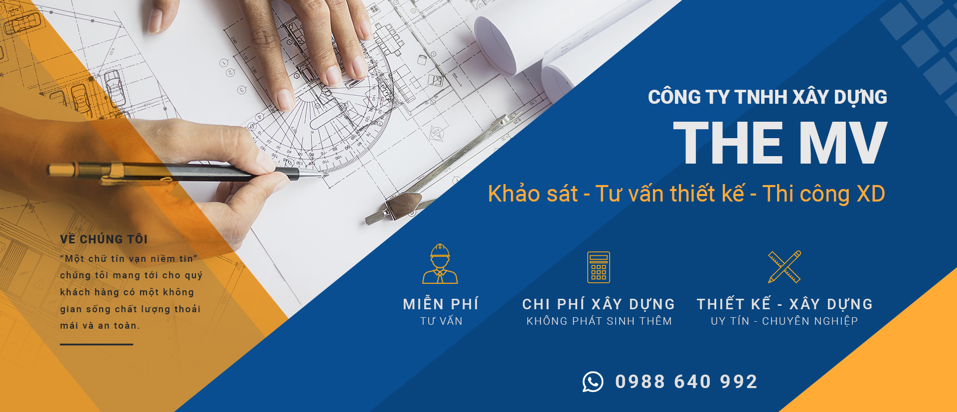 Công ty TNHH Xây dựng The MV chính thức hoạt động vào tháng 01/2021. Chúng tôi tự tin phát triển và khẳng định vị trí trong lĩnh vực thiết kế xây dựng với các loại hình: nhà ở, nhà phố, biệt thự... Với đội ngũ kiến trúc sư, kỹ sư trẻ, năng động và chuyên nghiệp sẽ cùng bạn lên ý tưởng thiết kế trọn gói theo yêu cầu. Thế mạnh của công ty Công ty TNHH Xây dựng The MV: