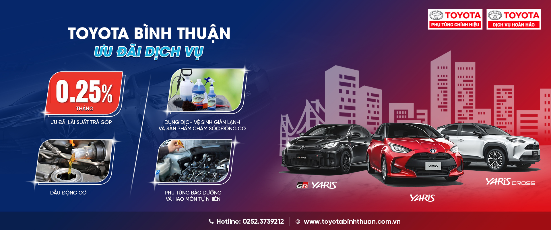 Để đảm bảo chất lượng phục vụ khách hàng gần xa, Toyota Bình Thuận đã được đầu tư hoàn chỉnh với các trang thiết bị, máy móc hiện đại nhất, được nhập khẩu từ Châu Âu và Nhật Bản. Đội ngũ kỹ thuật viên đã có thời gian được đào tạo và rèn luyện tay nghề tại Tp. hồ Chí Minh. Vì vậy, với sự chuẩn bị rất kỹ càng, Toyota Bình Thuận sẵn sàng lắng nghe và đồng hành cùng Quý Khách Hàng ngay từ hôm nay.
