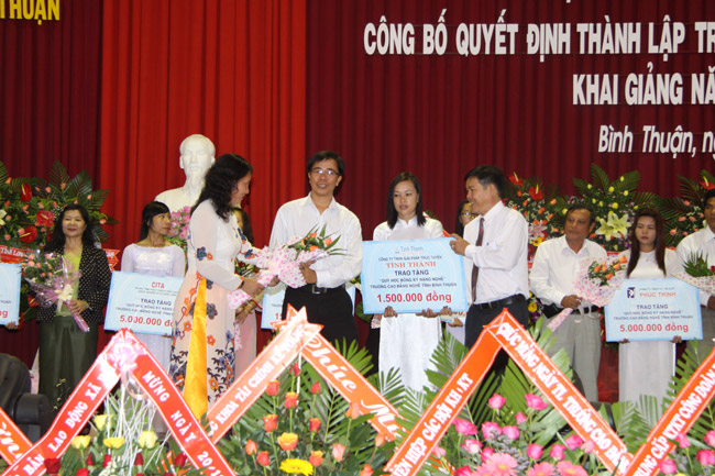 Sáng ngày 16/11/2012, Trường Cao đẳng nghề Bình Thuận long trọng tổ chức Lễ kỷ niệm 30 năm ngày Nhà giáo Việt Nam 20/11, Công bố quyết định thành lập Trường Cao đẳng nghề tỉnh Bình Thuận và khai giảng năm học 2012 -2013. Ông Nguyễn Thành Tâm - Ủy viên Ban Thường vụ Tỉnh ủy, Phó chủ tịch UBND tỉnh cùng đại diện lãnh đạo các Sở, ban, ngành, các tổ chức đảng, đoàn thể, các doanh nghiệp trong tỉnh và các trường, các trung tâm bạn đến dự và chia vui với tập thể lãnh đạo, cán bộ, giáo viên và học sinh-sinh viên toàn trường..